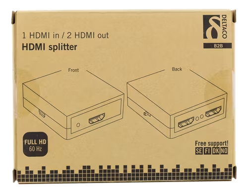 DELTACO HDMI splitter, 1x HDMI in, 2x HDMI ut, 6,75 Gbit/s, 1920x1080 i 60Hz, svart